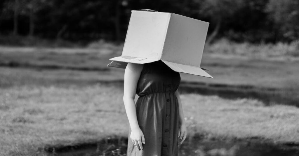 "…Comment es-tu entrée dans ta petite boîte, me demanderez-vous ? Eh bien, on m’y a forcée, on m’a modelée pour que je puisse y entrer. La seule chose que je sais, c’est que cette boîte s’appelle… La pression sociale…"